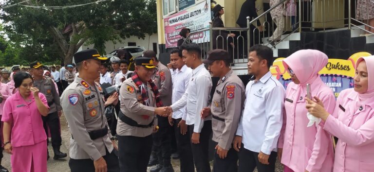 Kedatangan Kapolres baru disambut langsung oleh AKBP Rudy Silaen bersama istri, Ny. Greis Silaen, Ketua Bhayangkari Cabang Buton. Turut hadir Wakapolres Buton Kompol Aslim, para pejabat utama Polres Buton, jajaran Kapolsek, Bhayangkari, serta seluruh personel Polres Buton yang memadati halaman Mapolres.